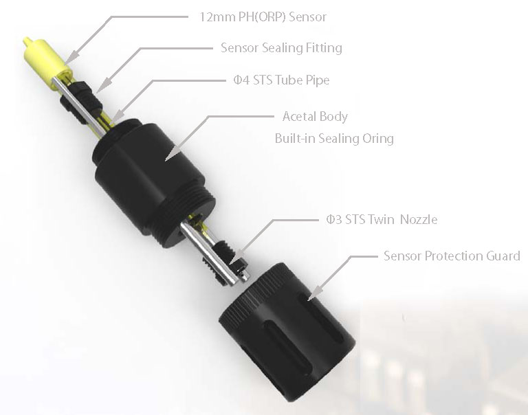 ÀçÁú : Body - Acetal / Nozzle - Stainless steel ±âÁ¸ 12mm pH/ORP ¼¾¼µî¿¡ ¿¡¾î¼¼Á¤¿ë ³ëÁñ ¿¬°áÇÏ¿© »ç¿ë
